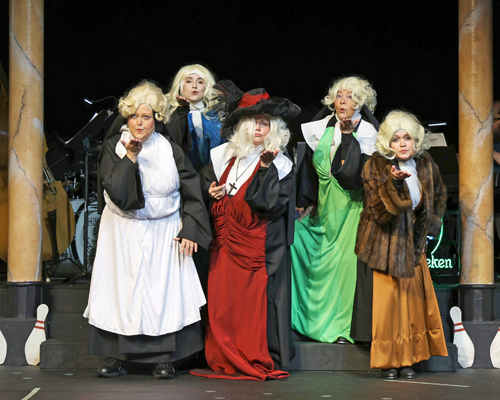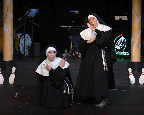 Front: Monica Ewing (Sister Robert Anne) Back: Patty Sundstrom (Sister Mary Amnesia) Kathe Rowe (Reverend Mother Sister Mary Regina) Daryl Johnson (Earl Dean Snedeker) Debbie Scoones (Sister Mary Hubert) Chaela Watkins (Sister Mary Leo) |