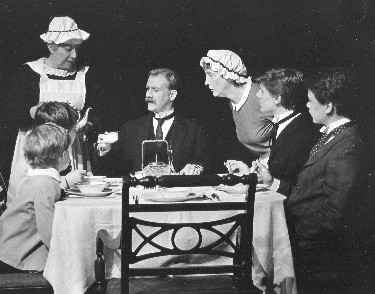 From left clockwise: John Walseth (Harlan) Oliver Ross (Whitney) Tobi Anderson (Margaret) Ron Richardson (Father) Dorothy French Willis (Annie) Joe E. Kruft (Clarence) Brodie Smith (John) |